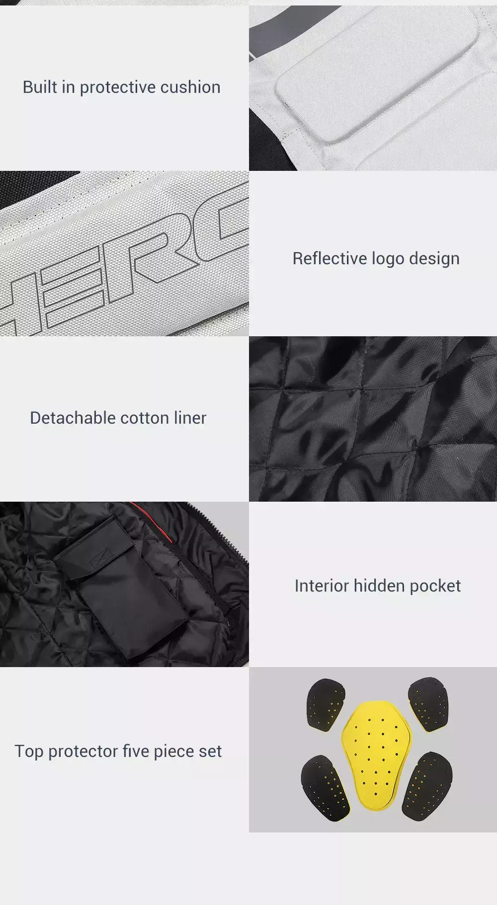 As almofadas externas de proteção contra impactos em EVA no peito, costas e bainha proporcionam dupla proteção.
