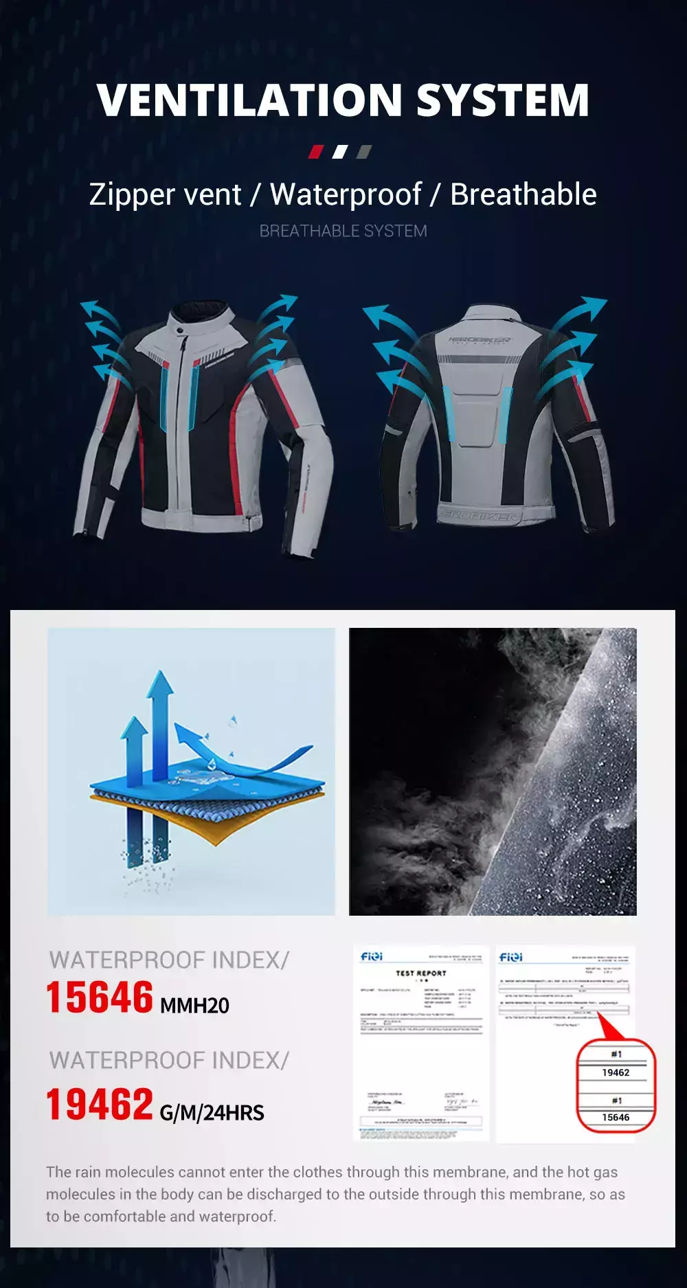 A camada intermediária adota membrana TPU, respirável e à prova d'água