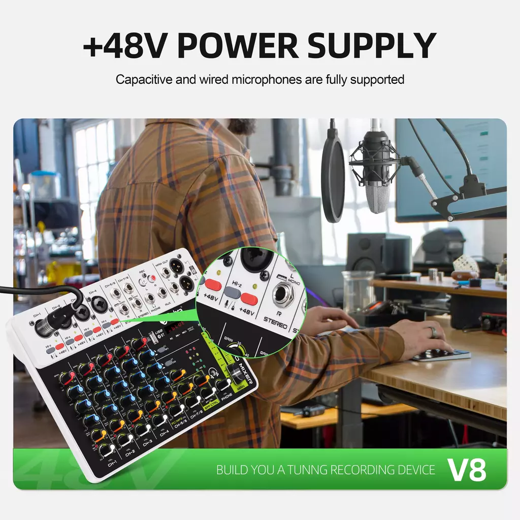 Entrada de microfone: configuração de entrada discreta e balanceada eletronicamente