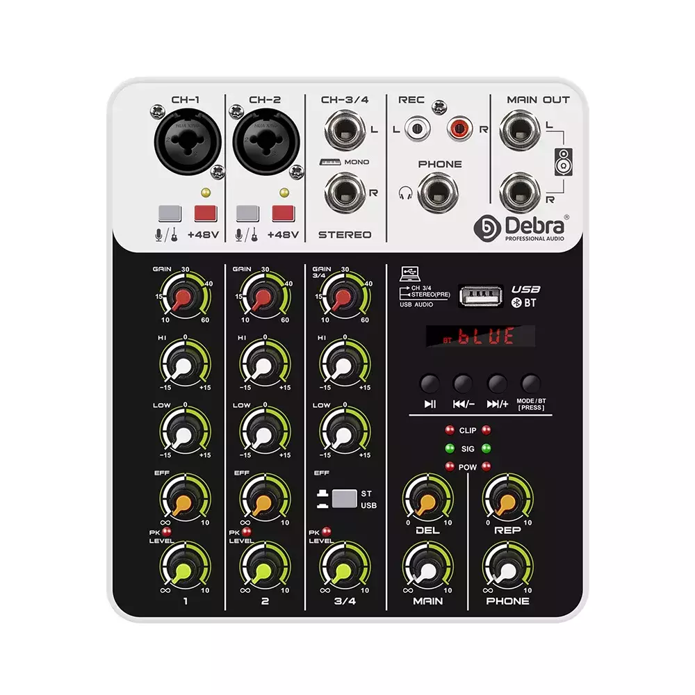 Saídas principais: +28dBu balanceada/=22 dBu desequilibrada