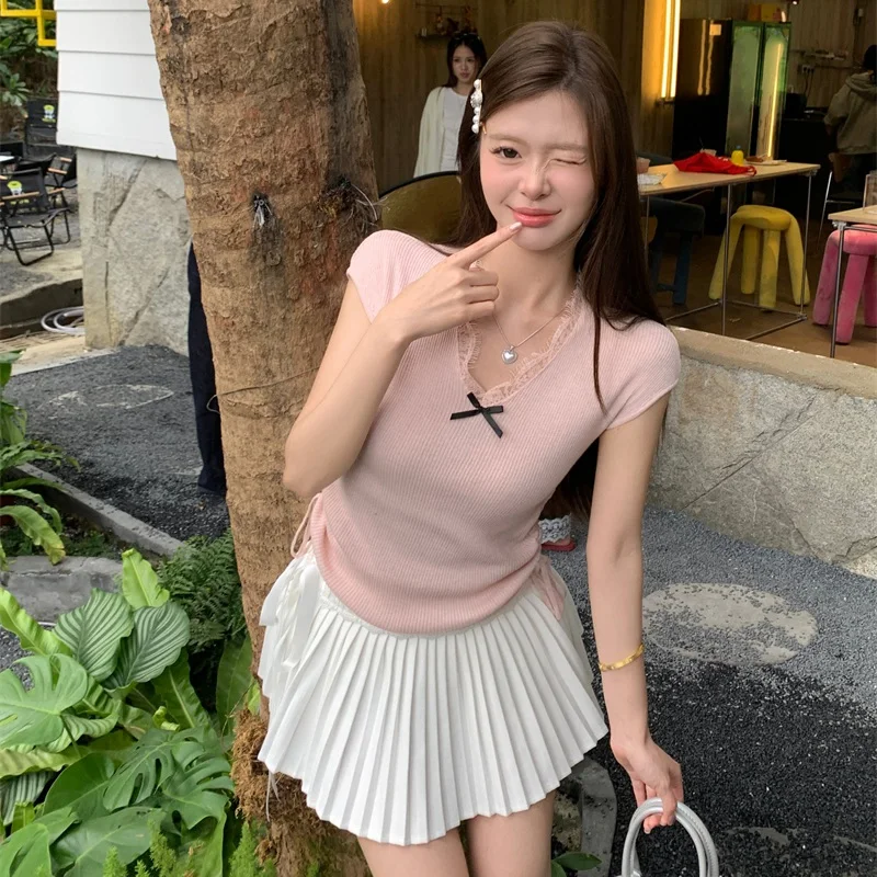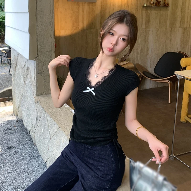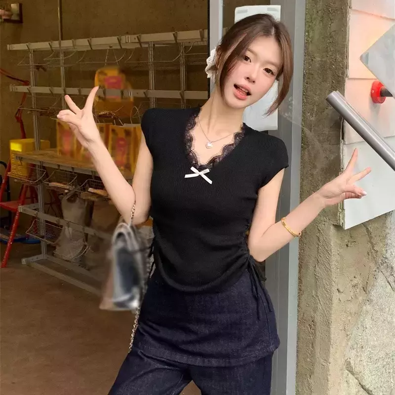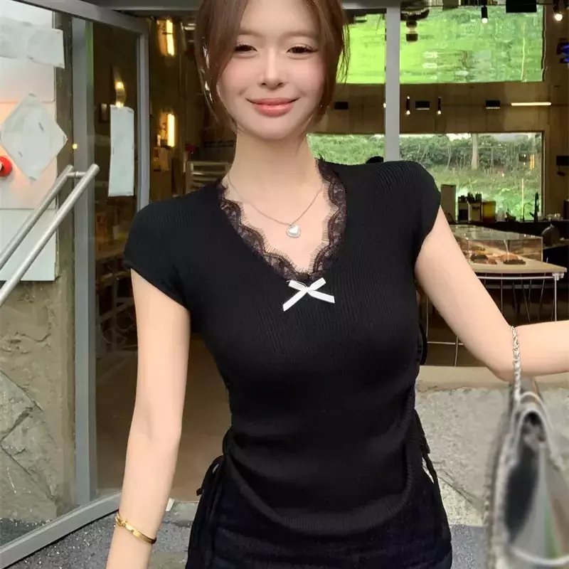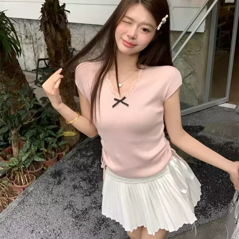 1.Versão coreana, blusas de manga curta versáteis e finas